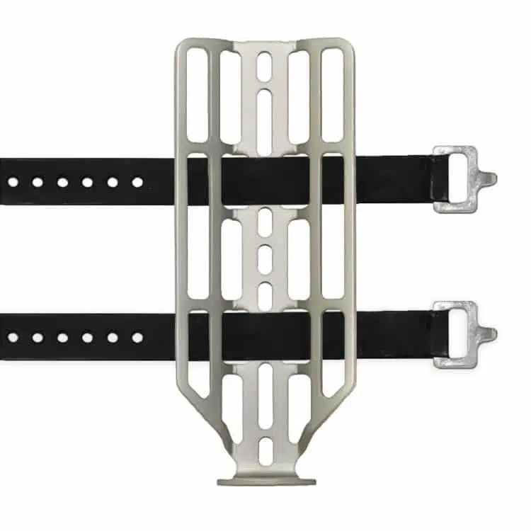 The Widefoot CargoMount™ Classic is the original one-piece aluminum cargo cage. Securely strap down a variety of bottles, smaller bags, and cylindrical objects to your bike frame or fork.